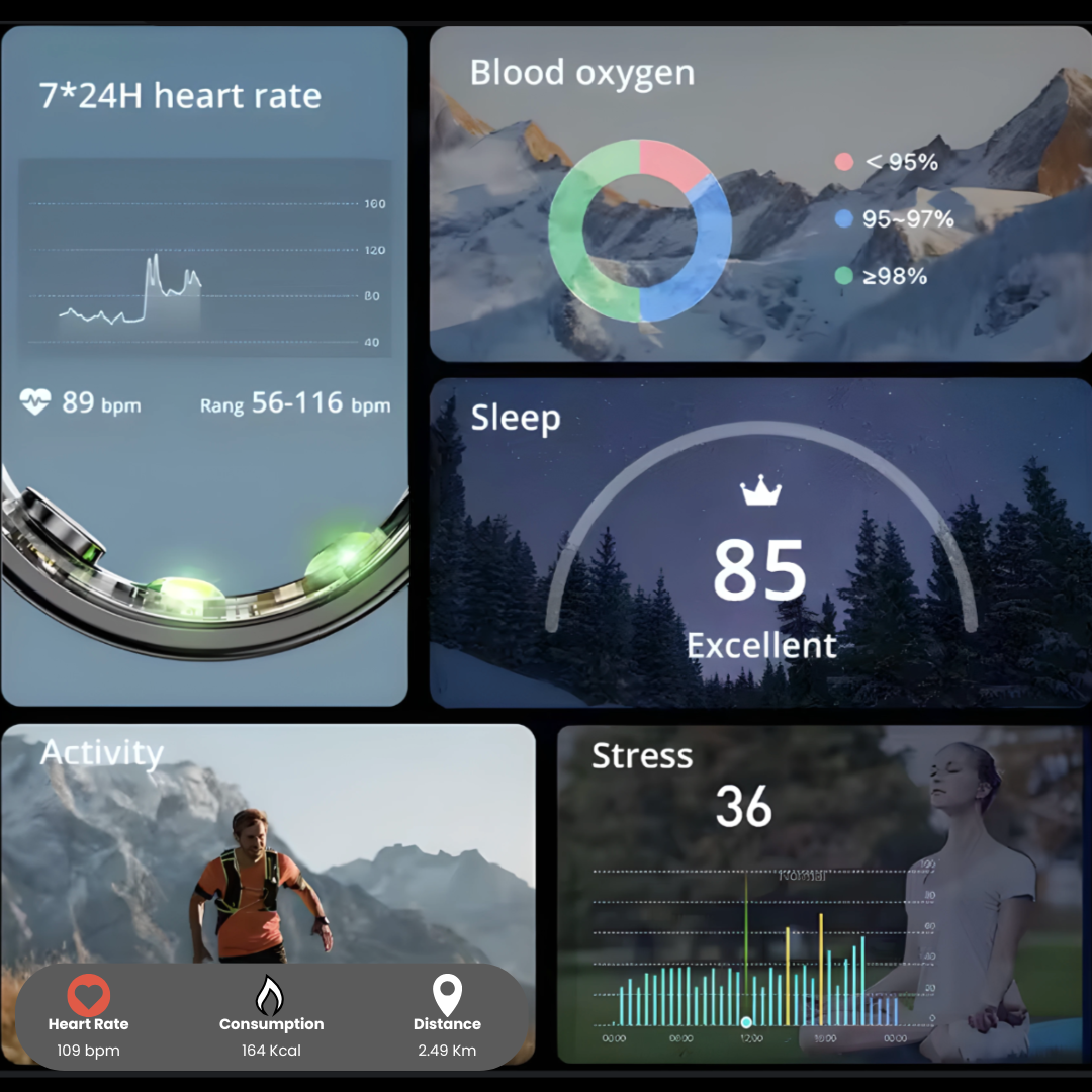 From the gym to the ocean, track every step, calorie, and heartbeat, all in a titanium ring that’s lighter than a coin.